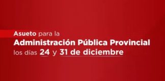 Asueto para la Administración Pública Provincial los días 24 y 31...