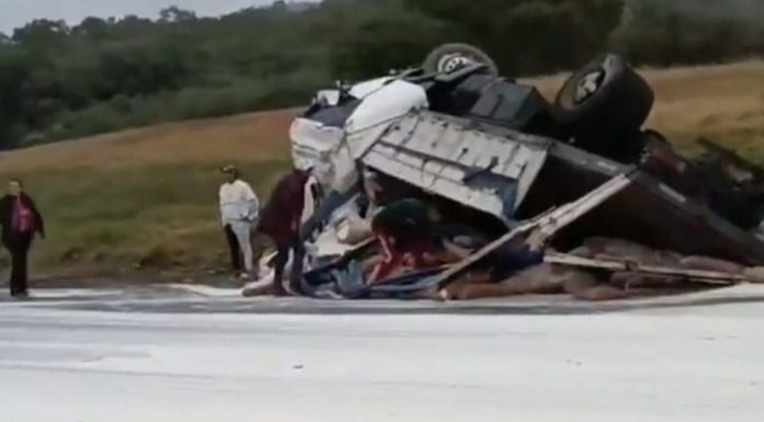 Un camión que transportaba bolsas de harina volcó sobre la ruta 9/34 y ocasionales automovilistas que...