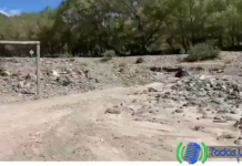 El playón deportivo de Alfarcito tapado de barro y piedras